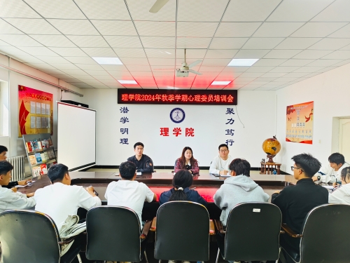 18/ 2024-10理学院开展“同心同行 筑梦远航”心理系列活动为进一步加强大学生心理健康教育工作,普及和宣传心理健康知识,培育学生积极的心理品质,促进学生身心健康协调发展,营造乐观、积极、健康的心理育人氛围。理学院开展“同心同行筑梦远航”系列活动。“心”桥搭建,助力成长。9月26日,学院开展了心理委员培训会。会议由学工办负责人李威燃主持,会上负责心理工作辅导员刘鑫鹏对心理委员做了专业知识的培训,24级新生辅导员邓庆超重点讲解心理问题识别与干预的技巧,并初步掌握一些有效的干预策略,提升了心理委员们的应急处理能力和团队协作精神。“心”悟成长,...