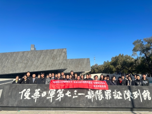 18/ 2024-10经济学院举办 “时刻铭记峥嵘岁月 坚决扛起使命担当” 主题党日活动10月12日上午,经济学院党员师生走进哈尔滨市平房区的侵华日军第七三一部队罪证陈列馆,开展了以“时刻铭记峥嵘岁月,坚决扛起使命担当”为主题的党日活动。学院党委书记雷金屹、纪委书记孙璐同志带队,与学院党员师生共同回顾历史,铭记国耻。党员师生通过馆内陈列的图片、文字、实物和多媒体影音资料等全面深入地了解侵华日军第七三一部队所犯下的各种罪行。通过参观更加深刻地领悟到日本侵华战争给中国人民带来的巨大苦难,更加真实地感受到历史的伤痛,更加珍惜革命先烈们用鲜血换来的民族解放与和平岁月。参观...