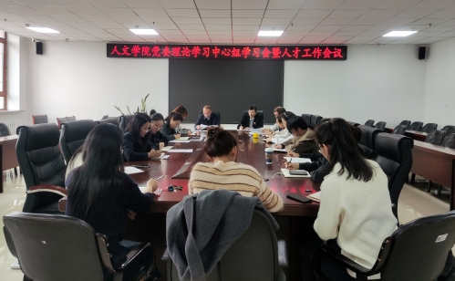18/ 2024-11人文学院召开党委理论学习中心组学习会议暨人才工作会议为深入学习贯彻习近平总书记关于人才工作的重要论述,全面贯彻落实学校2025年人才引进工作动员及推进会会议精神,推进党建与业务工作深度融合,全方位培养、引进、用好人才,为推动学院高质量发展提供人才支撑,11月15日下午,人文学院在朝阳楼0317会议室召开党委理论学习中心组学习会议暨人才工作会议。会议由党委书记孙晓辉主持,学院党委理论学习中心组成员、教研室主任、博士教师参加会议。会上,副院长刘庆华领学了《为全面推进强国建设、民族复兴伟业提供有力人才支撑——学习<习近平关于人才工作论...