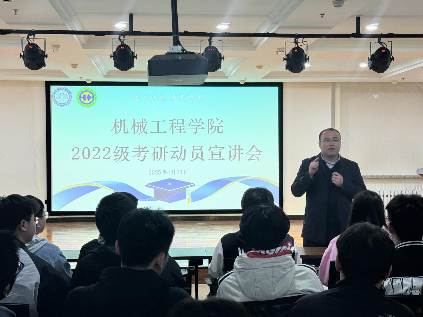 27/ 2025-04机械工程学院召开2022级学生考研动员大会为进一步激发2022级学生考研热情,帮助学生科学规划备考路径、锚定奋斗方向、明确报考院校,切实提升学院学生考研录取成功率,4月23日,机械工程学院在朝阳楼0239组织召开“蓄力启航逐梦研途”2022级学生考研动员宣讲会。会议特邀新东方考研项目资深教师任婧进行宣讲指导,机械工程学院2022级有考研意向的学生及年级辅导员150余人参加活动。会议由学院副处级辅导员韩永辉主持。会上,任婧老师聚焦国家教育战略需求和学生个人成长需求讲授了为什么要考研,围绕“选择”“规划”“努力”“效率”四...