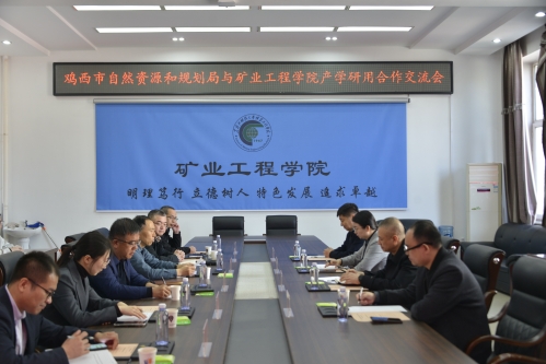 27/ 2025-04矿业工程学院与鸡西市自然资源和规划局签订合作协议4月23日,鸡西市自然资源和规划局局长张旭一行,到校与矿业工程学院开展合作交流并签订产学研用合作协议,矿业工程学院党委书记赵喜江、院长肖福坤、副院长商宇航参加会议。赵喜江对张旭一行表示热烈欢迎,并介绍了学校历史沿革、办学特色及人才培养成果,希望以此次合作为契机,实现互惠共赢、共同发展的目标。肖福坤介绍了学院整体情况,并表示学院始终立足地方发展需求,希望今后围绕学科建设、科研创新及人才培养等方面进一步加强合作交流。张旭对学院的办学理念及社会服务能力表示高度认可,希望双方充分发挥各...