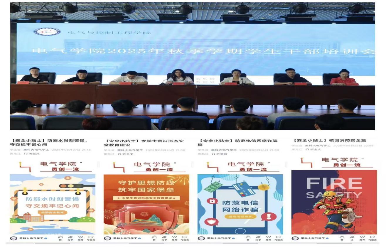 04/ 2025-09电气学院扎实开展新学期首周教育工作电气学院结合学生工作实际,聚焦精心策划、紧扣重点、全面发力扎实开展新学期首周教育工作。统筹布局扬旗帜,蓝图绘就之启。电气学院于8月22日召开2025年秋季学期学生工作研讨会,会上围绕2025级新生报到工作、入校流程引导、军训组织工作、入学教育等方面进行安排。针对在校生围绕开学返校思想动态、学风建设、考风考纪等方面进行安排部署;各年级利用首周班会为契机,围绕道德素养教育、心理健康教育、诚信教育、校史校情教育、法规法纪等五个方面开展主题教育,帮助学生消除“假期综合征”,将关注点从休...