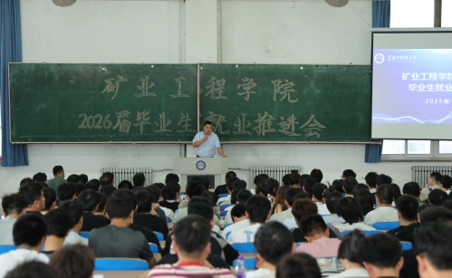 15/ 2025-09矿业工程学院召开2026届毕业生就业推进会为扎实推进就业工作,助力毕业生树立正确就业观,9月3日,矿业工程学院在教学主楼EN0401教室召开2026届毕业生就业推进会。学院党委副书记李强,辅导员郑智、杨永超以及全体2026届毕业生参加了本次会议。会上,杨永超传达了关于2026届毕业生辅助就业的相关政策,要求同学们抓住“金九银十”的招聘黄金期,考研、考公的冲刺期,做好职业规划,拓宽就业视野,认真对待就业过程中的每一个环节、每一次机会。李强鼓励同学们要主动出击,找工作时摒弃“懒就业”“慢就业”的消极心态,结合自身优势找准定...