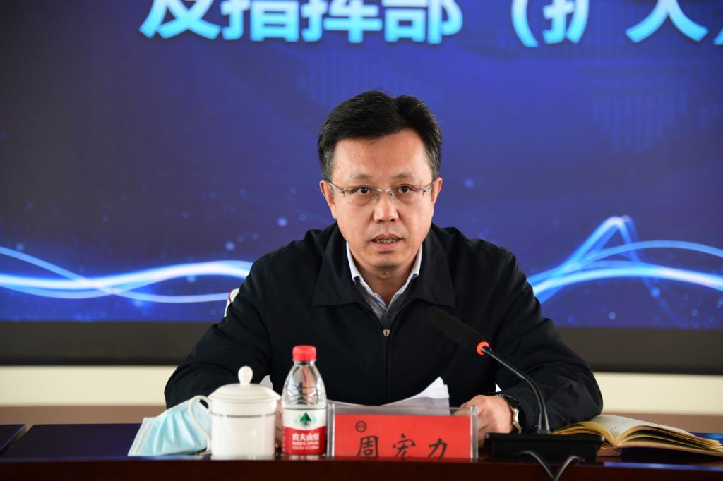 周宏力在讲话中要求,全校各单位、各级组织、各级干部要在认识上再重视。进一步把思想和行动统一到学习贯彻党的二十大精神和习近平总书记关于疫情防控的重要讲话、重要指示批示精神上来,落实省委省政府、省委教育工委省教育厅相关部署,按照“疫情要防住、经济要稳住、发展要安全”的要求,毫不动摇坚持“动态清零”总方针,严格执行“两个严于”原则,坚决克服麻痹思想、厌战情绪、侥幸心理和松劲心态,自觉扛起维护校园安全稳定政治责任。要在措施上再细化。按照“早快准严细实”和“九早”要求,迅速进入“战时”状态,实行住校工作模式;以问题为导向,进一步查漏洞、补短板、强弱项;持续强化师生信息排查,严格执行“零报告”“日报告”等制度;进一步加大各类安全隐患防范、校园巡查巡逻及校门、快递、商服、餐饮等管控力度,确保全覆盖、无死角。要在条件保障上再加力。坚持“宁可备而不用、不可用而不备”,切实做好防疫物资储备和隔离场所等保障;坚持重点场所清洁、消杀,加强餐饮服务安全管理,做好快递、购物及水电暖等生活服务保障,强化对家庭经济困难、因疫患病和心理问题师生的关心与帮扶;健全完善联防联控和应急处置机制,保证突发疫情时能第一时间按流程、高效、安全处置。要在责任落实上再压紧。进一步强化责任意识,提升工作执行力,超前谋划、科学安排,统筹做好日常教育管理各项工作预案;加强督导检查,强化追责问责,层层传导压力,层层落实责任,确保校园疫情防控各项任务落地落细落靠,牢牢守住师生健康和校园稳定底线。
