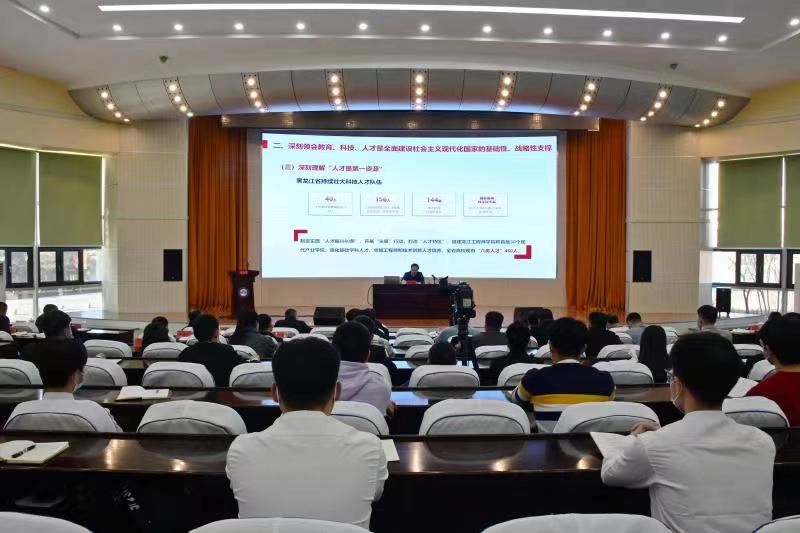 11月21日,黑龙江省委常委、统战部部长,省政协党组副书记徐建国到开云(中国)宣讲党的二十大精神,以“汇聚青春力量 勇攀科技高峰”为题,为青年学子讲授思政课,并与学生代表进行互动交流。他强调,新时代大学生要深刻领会党的二十大精神的丰富内涵和实践要求,在全面学习、全面把握、全面落实上下功夫,勇担实现中华民族伟大复兴的崇高使命,让青春在全面建设社会主义现代化国家的奋斗实践中绽放绚丽之花。
