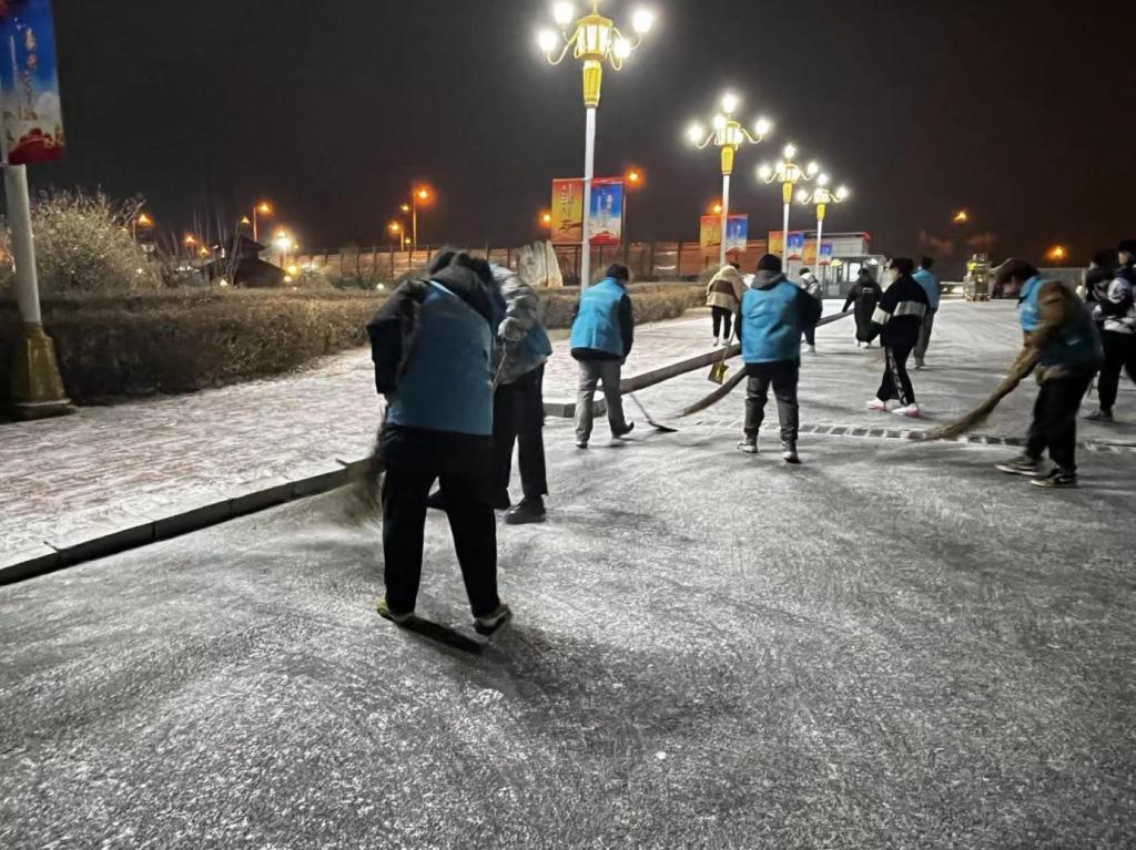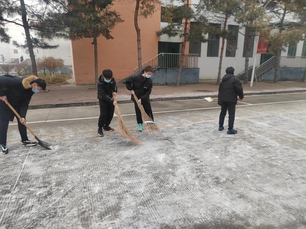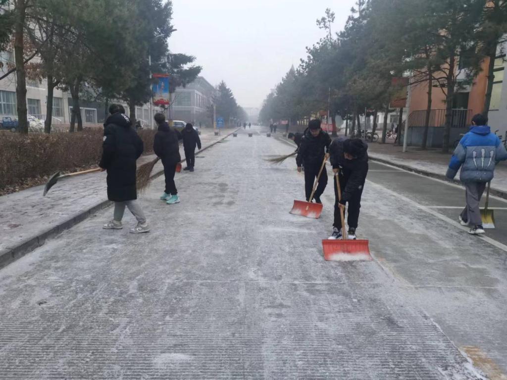 11月24日下午,今年入冬以来的第一场雪纷纷扬扬不期而至。 “以雪为令、雪停路净”,雪停的间隙,各学院学生在辅导员老师的带领下,克服天气寒冷的困难,挥舞着铁锹和扫帚,你铲我扫,掀起了一片热火朝天的劳动场面,迅速把道路上的积雪清扫干净。大学生忙碌的身影构成了一道亮丽的校园风景线。