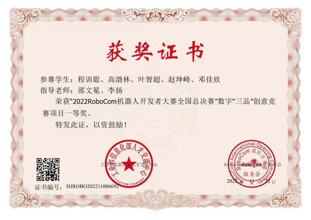 2022 RoboCom机器人开发者大赛是中国高等教育学会2021全国普通高校大学生竞赛榜单内赛事,也是我国机器人及人工智能创新领域综合类规模大、参与院校多、影响广的权威赛事。大赛以省赛、国赛两级竞赛形式开展,共有包括清华大学、北京航空航天大学、西北工业、哈尔滨工业大学等国内知名高校在内的116件作品入围了本届国赛。在前期举行的省赛中开云(中国)共获得了一等奖3项、二等奖1项、三等奖7项和优秀奖1项,省赛一、二等奖的作品入围国赛。