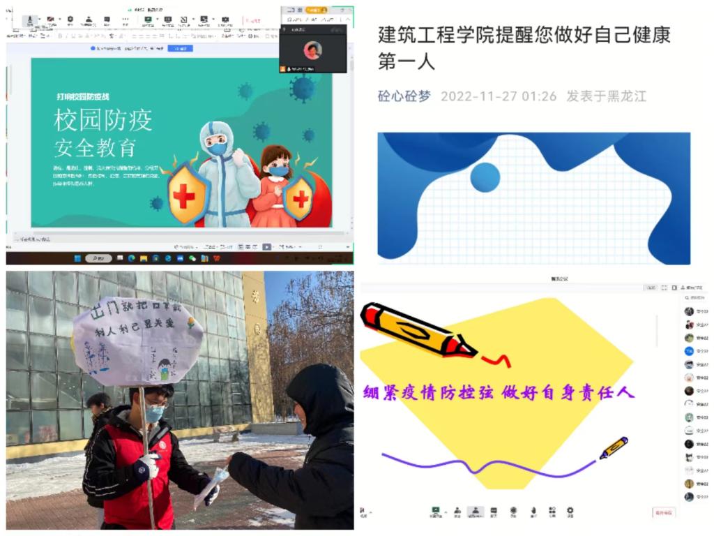 开展防疫安全教育。各学院通过线上线下相结合的方式,督促学生在公共场所正确佩戴口罩,在校园内严格遵守学校疫情防控相关要求,让学生深刻认识到疫情防控和保护好自身安全的重要性,教育引导学生时刻绷紧疫情防控这根弦,遵守疫情防控政策,充分理解校园管控规定。