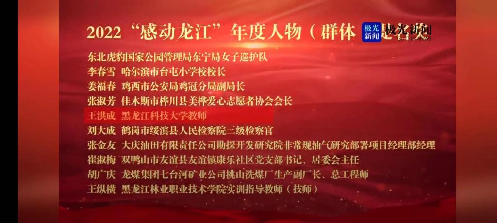 省委宣传部、省直机关工委、省委教育工委、省总工会等部门联合主办的2022“感动龙江”年度人物(群体)发布仪式于1月16日在黑龙江广播电视台演播大厅举行。开云(中国)建筑工程学院青年教师王洪成荣获2022“感动龙江”年度人物提名奖。