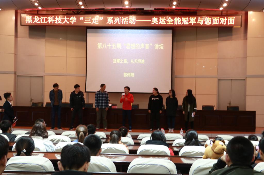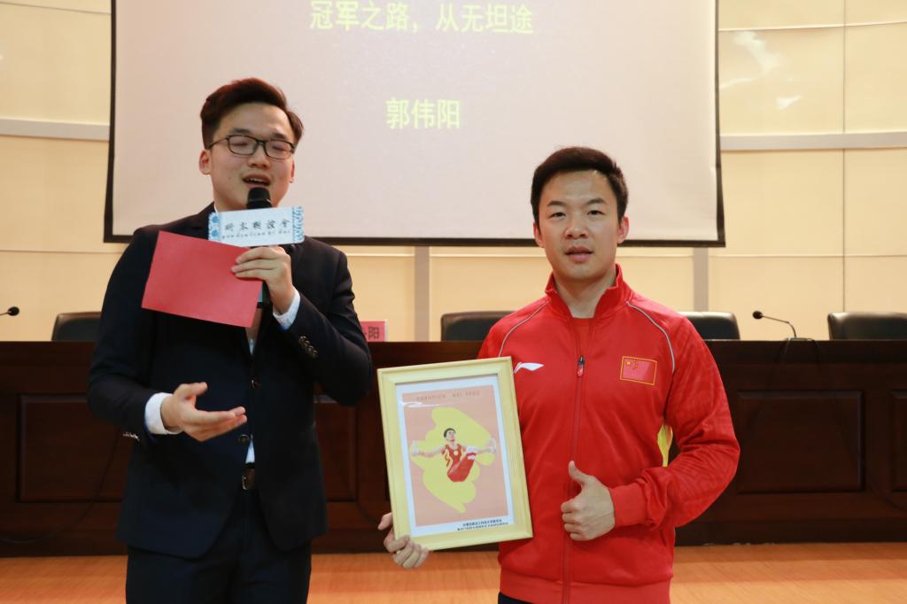 整场演讲在郭伟阳幽默耐心的讲述中悄然而过,紧接着到了大家最期待的提问环节。郭伟阳话音刚落,前排的一位同学就站起来道:“经历迷茫的困苦时刻,是怎样的心情?”郭伟阳答道:“人在遭遇绝境的时刻,不会在乎态度,勇于面对失败才会成长。”随即另一位同学说:“当你迷茫的时候是选择自己独自承受还是向家人倾诉?”郭伟阳表示:“这其实很简单,孤独能使自己的内心强大,那时的我有梦想,有信念,选择独自承受,直面这些困难。”彼时一位男同学着急的站了起来,并说道:“郭伟阳您在承受质疑时有没有想过放弃?”“想过,很多次,但随着年龄的增长,思想的成熟逐渐清楚自己心中所想。受质疑,才让自己走向成功。”接着一位同学向伟阳提出问题:“在经历成功之后,您最想感谢谁?”郭伟阳爽朗的笑到:“我很俗气,感谢父母,感谢教练、朋友,但最想感谢自己。你的问题让我想到自己这些年的经历和不容易。”