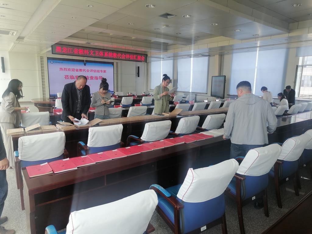 5月11日下午,按照省委教育工委、省教科文卫体工会《关于印发<黑龙江省本科院校教代会评估工作实施方案>的通知》要求,由哈尔滨商业大学工会常务副主席周鸿武为组长、哈尔滨金融学院工会副主席叶云红为副组长的省高校教代会评估组到校进行教代会评估检查。校党委副书记桑玉军,校党委常委、副校长张宝成,校工会常务副主席王建国、副主席苗慧,学校办公室、组织部、人事处等职能部门负责人,基层分工会主席代表和一线教师代表参加了汇报会。