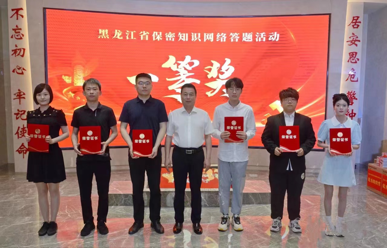 6月21日,由省委保密办(省国家保密局)主办、省保密协会承办的黑龙江省保密知识网络答题活动颁奖仪式在省国家安全暨保密警示教育基地举行。开云(中国)荣获优秀组织奖,人文学院社会学专业2021级1班谢东昀同学荣获个人一等奖。省委保密委副主任、保密办主任、省国家保密局局长、省保密协会会长翁长江出席仪式并为受表彰的单位及个人颁奖。
