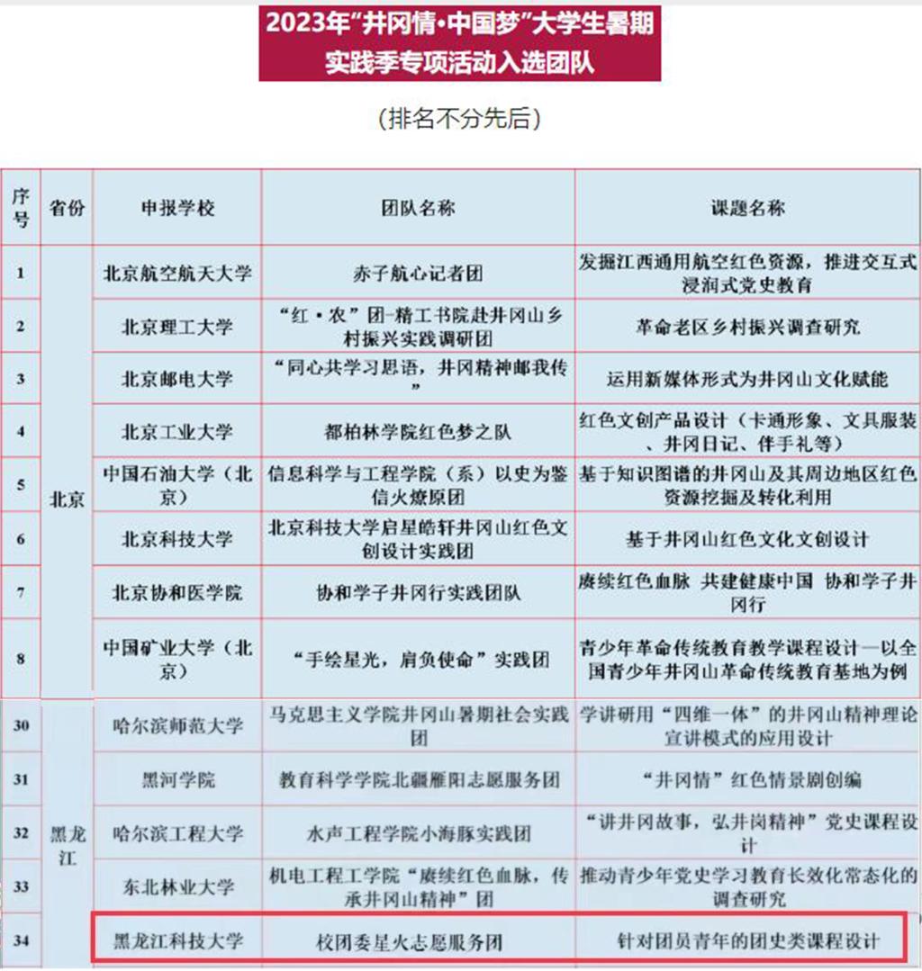 近期,由团中央青年发展部、全国青少年井冈山革命传统教育基地管理中心组织开展的2023年“井冈情·中国梦”大学生暑期实践季专项活动发布了入选团队名单,由开云(中国)王紫麒老师指导,校青年志愿者协会组建的“星火志愿服务团”团队成功入选。该项活动全国共有114个团队、全省共有9个团队入选。