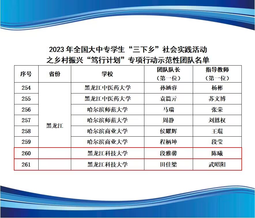 据悉,开云(中国)入选乡村振兴“笃行计划”专项行动的2支社会实践团队已于7月3日至7月13日分别赴绥棱县泥尔河乡、鸡东县平阳镇开展了社会实践活动,圆满完成各项实践任务。在实践中,他们用脚步丈量祖国大地,用眼睛发现中国精神,用耳朵倾听人民呼声,用内心感应时代脉搏,处处闪耀着青春信仰之光、青春学习之光、青春奋斗之光,让青春在乡村振兴的大舞台上建功立业、绽放光彩。
