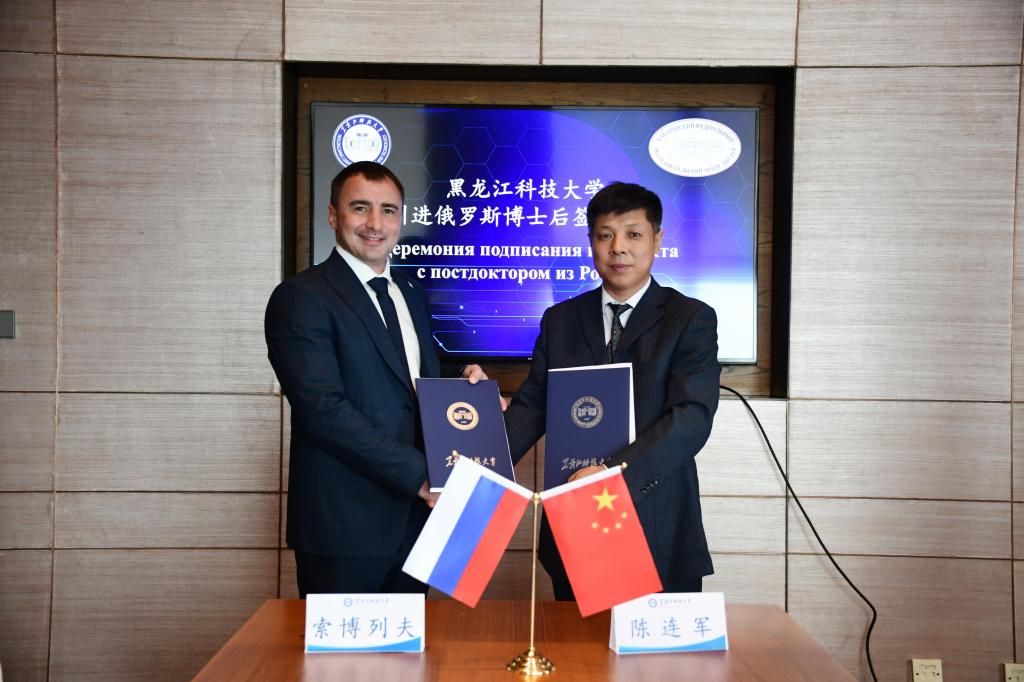 人事处处长陈连军代表学校与全职引进博士后签署协议