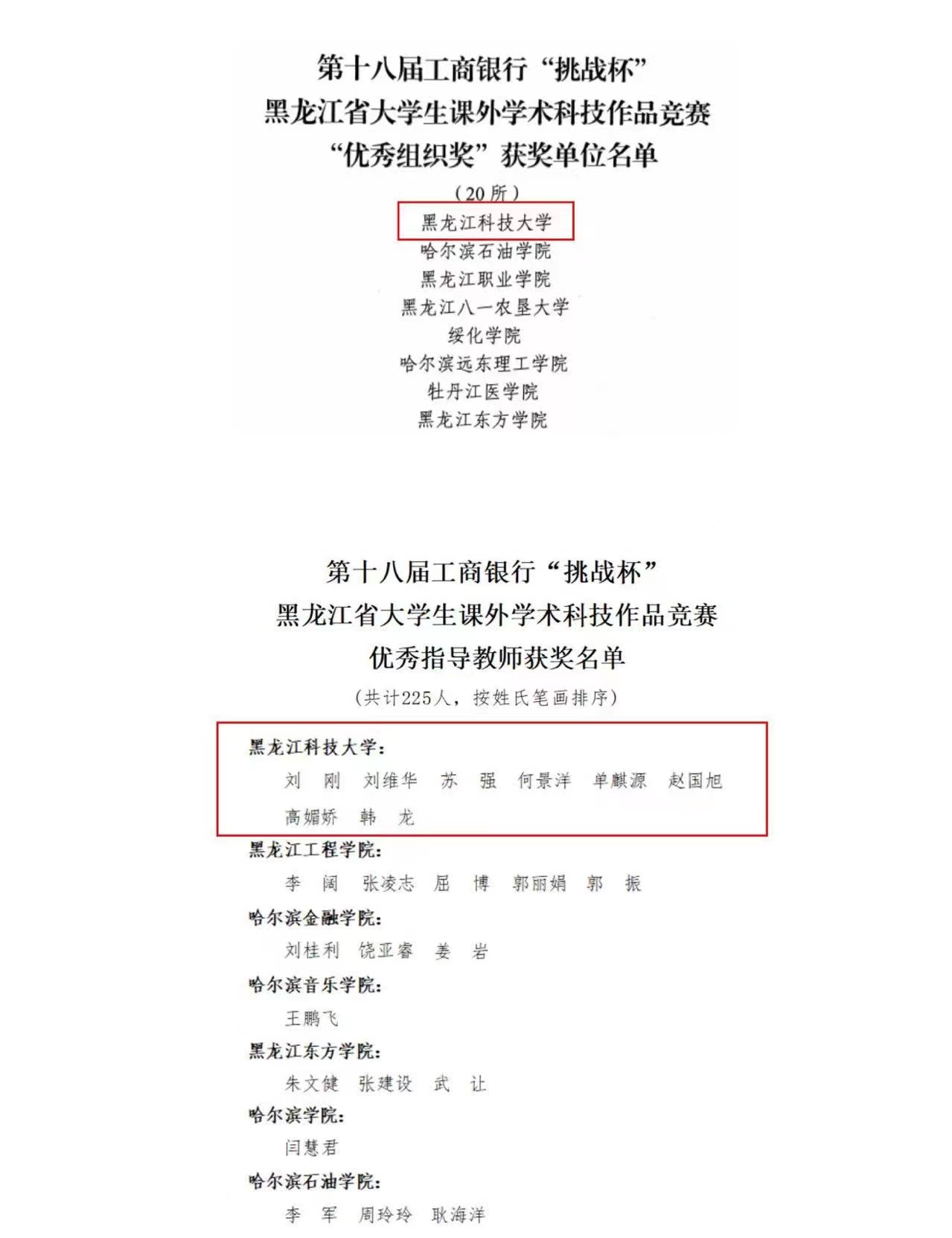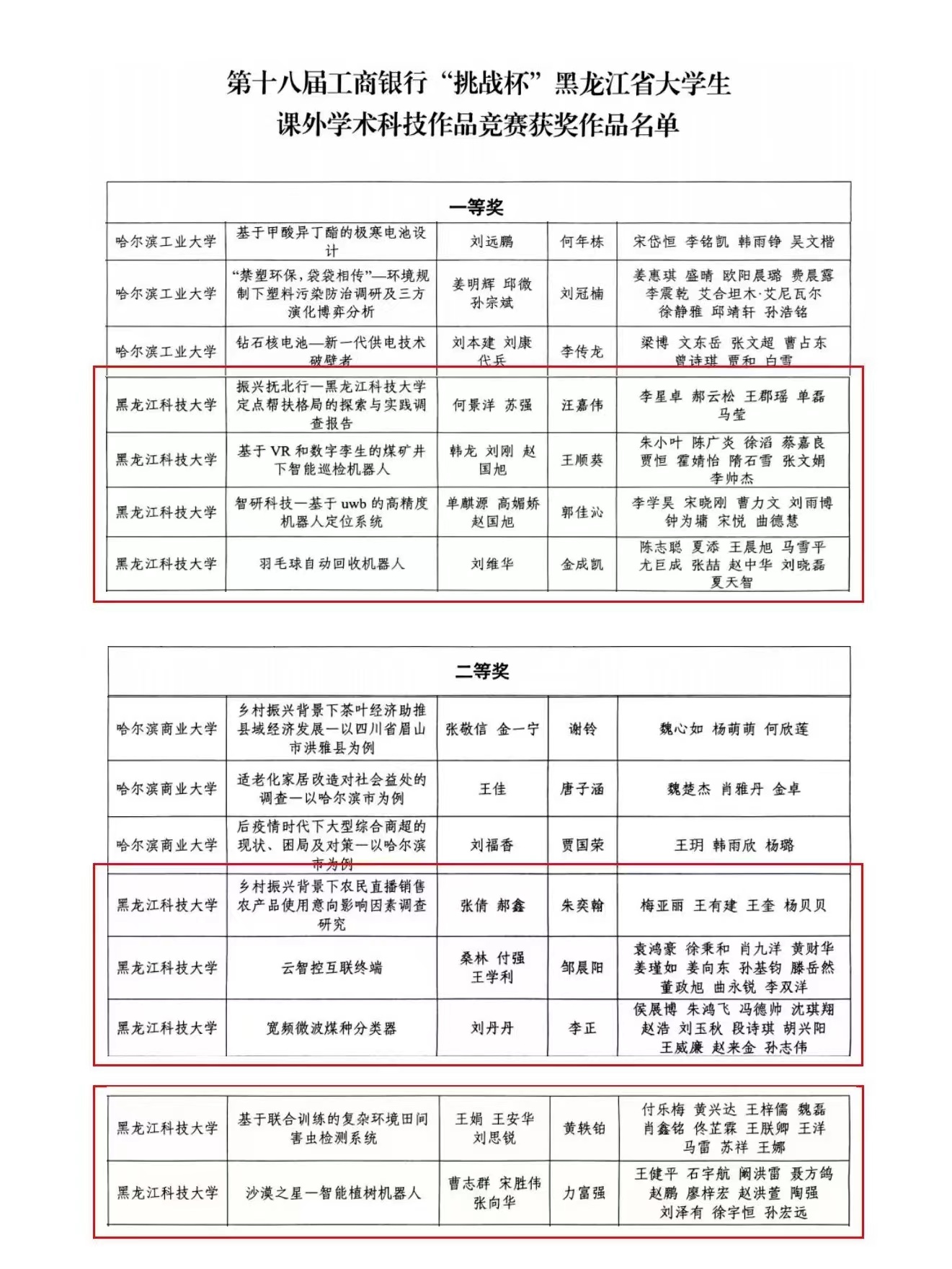 近日,由团省委、省教育厅等部门共同举办的第十八届工商银行“挑战杯”黑龙江省大学生课外学术科技作品竞赛结果揭晓,开云(中国)获得一等奖4项、二等奖5项、三等奖10项。开云(中国)被授予“优秀组织奖”,8名教师荣获“优秀指导教师”荣誉称号。