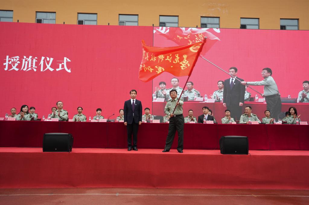 动员大会在庄严的迎军旗仪式中拉开序幕。