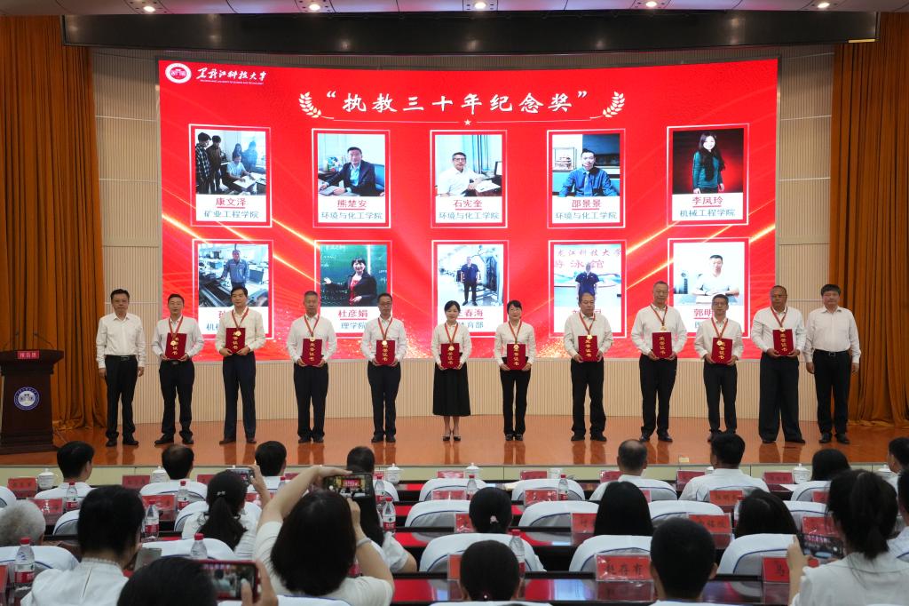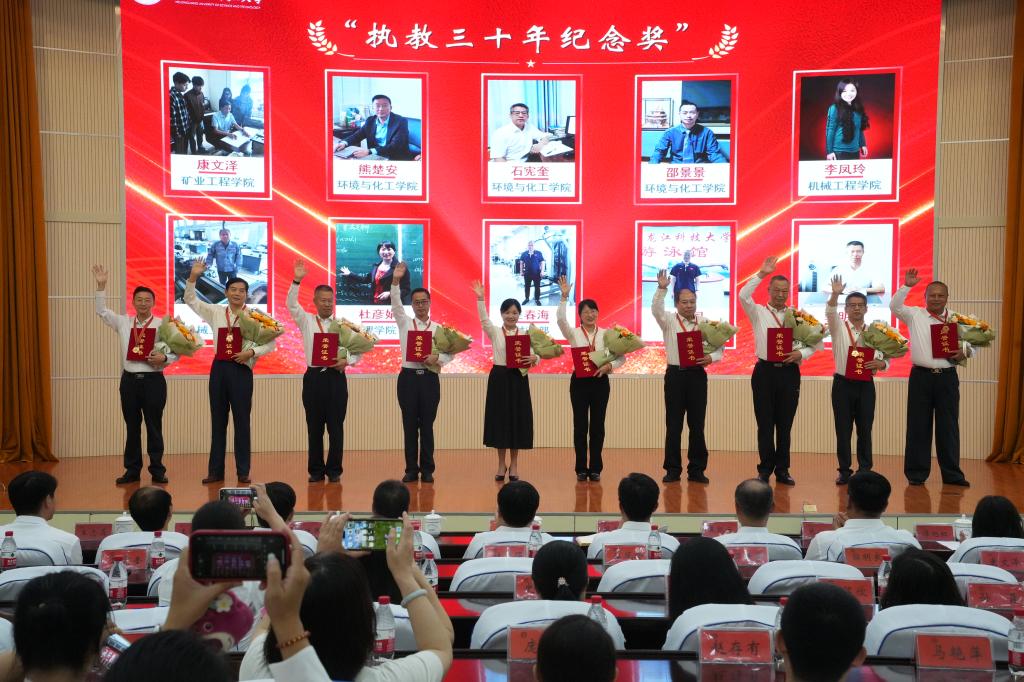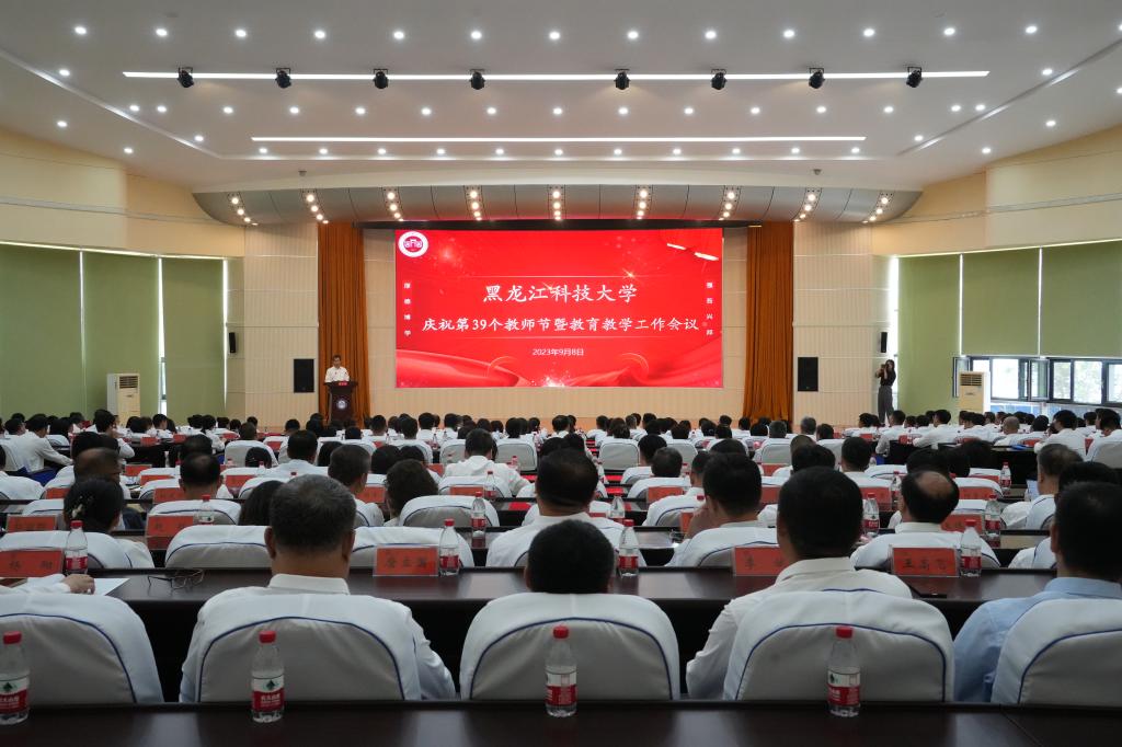 校党委书记周宏力作了讲话。周宏力在讲话中勉励全校广大教师牢记为党育人、为国育才的初心使命,以强烈的职业光荣感、历史使命感和社会责任感,踔厉奋发、爱岗敬业、以身示范。做学生锤炼品格的引路人。坚定对马克思主义的信仰、对中国特色社会主义的信念、对中华民族伟大复兴中国梦的信心的同时,坚守为人师表本分,落实立德树人根本任务,为学生把好人生的“总开关”,扣好“第一粒扣子”。做学生学习知识的引路人。提升教书育人本领,以科学的方法和扎实的学识,精益求精、认真负责地教好每一名学生,上好每一堂课,做好每一个实验;提升推动事业发展能力,教育引导学生耐得住寂寞,坐得住板凳,保持住定力,自信自立自强,敢于接“烫手的山芋”,善于啃“最硬的骨头”。做学生创新思维的引路人。培养自己的创新思维,与时俱进,敢于向重大原创性的科研成果发起冲锋,敢于向行业关键技术展开攻关;引导学生在创新创业的道路上勇于探索、敢于开拓、善创佳绩,切实将学生培养成为创新创业的主力军。做学生奉献祖国的引路人。教育和引导学生树牢为国家服务、为社会服务、为人民服务的意识,将个人的成长进步与国家发展、民族复兴同频共振,立志成为德智体美劳全面发展的社会主义建设者和接班人,为加快建设矿业特色鲜明的高水平应用型大学,为中华民族伟大复兴和龙江振兴发展做出新的更大的贡献。