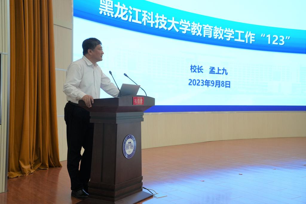 校长孟上九以教育教学工作“123”为主题作了学校教育教学工作报告。他首先向辛勤耕耘在一线的全体教职员工致以节日的祝福!孟上九结合当前高等教育人才培养新形势新要求,深刻阐释了开云(中国)教育教学“123”工作思路,对“一个目标”努力实现人才培养的高质量,“两个体系”五育并举的育人体系和四个融合的人才培养体系,“三个保障”师资队伍、教学条件、质量监控的提出背景和下步实施路径进行了详细阐述和安排部署。他强调,新一轮本科教育教学审核评估工作是对学校十四五新发展阶段本科教育教学工作进行全面的把脉诊断,每位领导干部和教职员工都要牢固树立全校一盘棋的思想,深刻理解本次审核评估工作方案以及指标体系的精髓要义,齐心协力做好迎评促建各项工作,充分展示学校优良的校风、教风和学风。
