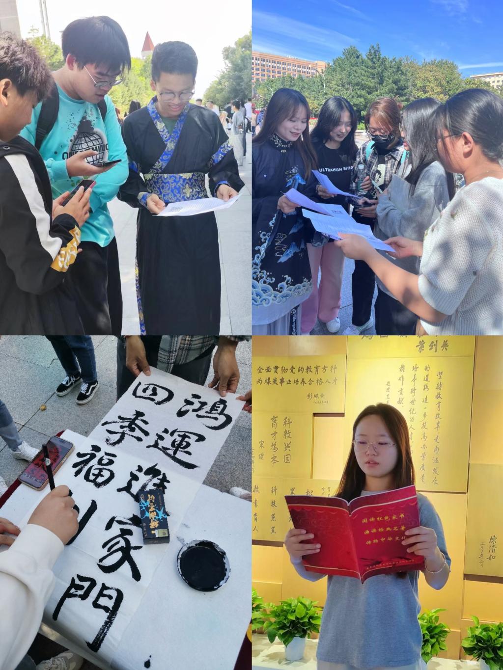 依据此次推普周活动主题:推广普通话,奋进新征程。组织全校学生在此次推普活动周中开展了丰富多彩的活动,既有抓好教学主阵地的规范使用语言文字的专题培训,也有深化大学生阅读活动,传承弘扬中华优秀语言文化,推进文化自信自强,组织学生积极参与中华经典诵写讲大赛。借助推普活动弘扬时代新风,以学生社会实践活动为依托,鼓励学生深入基层,发掘我省红色革命资源和地方语言特色,以普通话为桥梁,创新传承龙江“四大精神”。在推广活动中,学生还自发组织了现场书写毛笔字活动,受到师生一致好评。