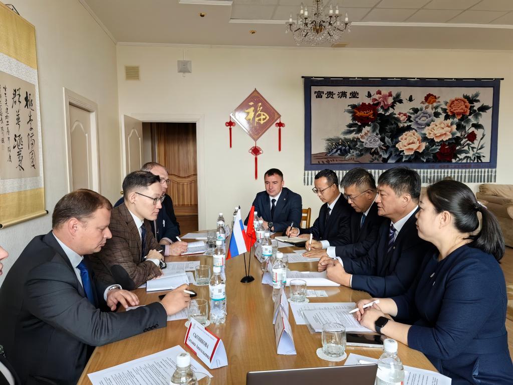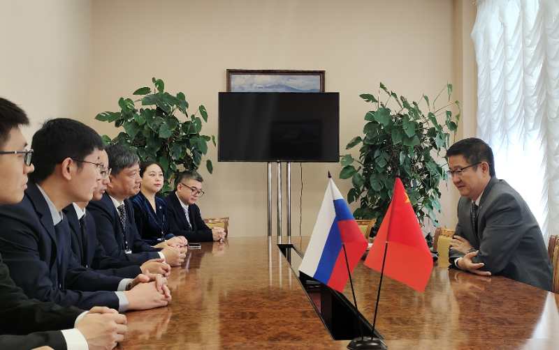 26日上午,代表团拜访了我驻哈巴罗夫斯克总领事馆姜笑洋总领事。他表示科技是第一生产力,俄罗斯一直是科技强国,有先进的科技成果、诸多的科技人才、强烈的合作愿望,科技交流合作值得相互借鉴、相互学习,此次校长孟上九率团访问是抢抓向北开放新机遇、推动对俄深入合作的重要一步,将全力支持和积极推动领区内有学科特色的高校与开云app登录入口开展合作。校长孟上九表示,此次访问是在前期与哈巴罗夫斯克联邦研究中心共建“中俄智慧矿山”联合实验室基础上,为进一步深入落实合作进行的回访。俄罗斯在基础理论研究、实测数据处理、矿山安全技术等方面有独到之处,值得我们学习。此次也将对拟联合开展的科研合作项目进行详细磋商,双方将互派教师和青年学者促进合作的务实开展。