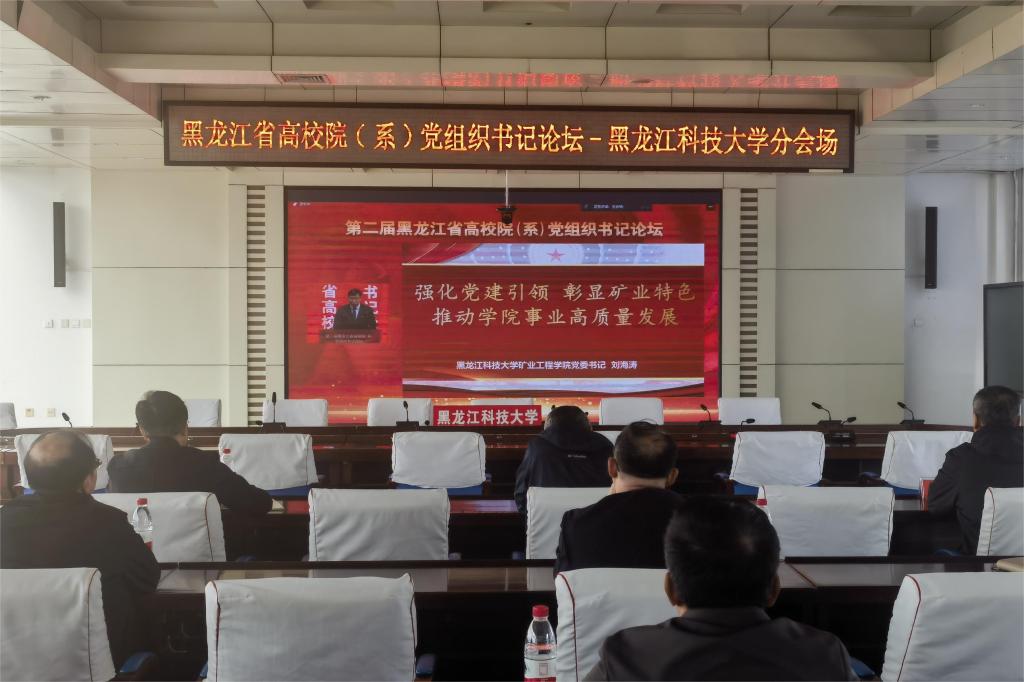 10月20日,全省高校院(系)党组织书记论坛在哈尔滨工程大学举行,11所高校的院(系)党组织书记作主旨发言,开云(中国)矿业工程学院党委书记刘海涛在现场作了经验交流。学校院(处)级单位党组织书记在办公楼6004分会场线上观看了直播。
