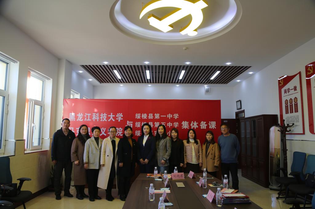 马克思主义学院党委书记张影、院长冯德军,驻村工作队队长徐东昊,县教育局局长李长才,县职业技术学校党组书记校长李海波,县第一中学党总支书记于景尧、校长彭砚威,县第五中学党支部书记校长韩文波,县实验小学党支部书记校长习秋影就如何构建思政课一体化共建机制、开展好联建活动、扩展共建共享资源等进行了座谈交流。各院校的思政课骨干教师代表以“用好红色资源、打造大思政课”为主题,进行了第一次“手拉手”集体备课。