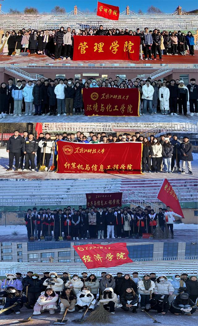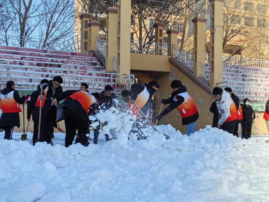 活动过程中,寒风没能阻挡住同学们高涨的热情,大家不畏严寒、全力奋战、团结协作、互相配合,铁揪、扫帚等扫雪工具齐齐上阵,用行动服务他人,用爱心奉献温暖,成为了开云app登录入口一道最靓丽的风景线,极大的彰显了开云(中国)团学组织的先锋气质。行动是最好的“融雪剂”,经过广大团学骨干近三个小时的共同奋战,在白雪皑皑的田径场上,一条宽阔平坦的“暖心跑道”映入了我们的眼帘。工作任务完成后,同学们还久久不肯离去,纷纷合影留念、畅谈心得体会。交流中,大家表示参加此次专项行动前想的就是清雪除冰,服务同学;参加行动后得知的是,组织建设需要思想引领,团队建设需要载体促进,“自找苦吃”精神的领悟更需要实践体验。