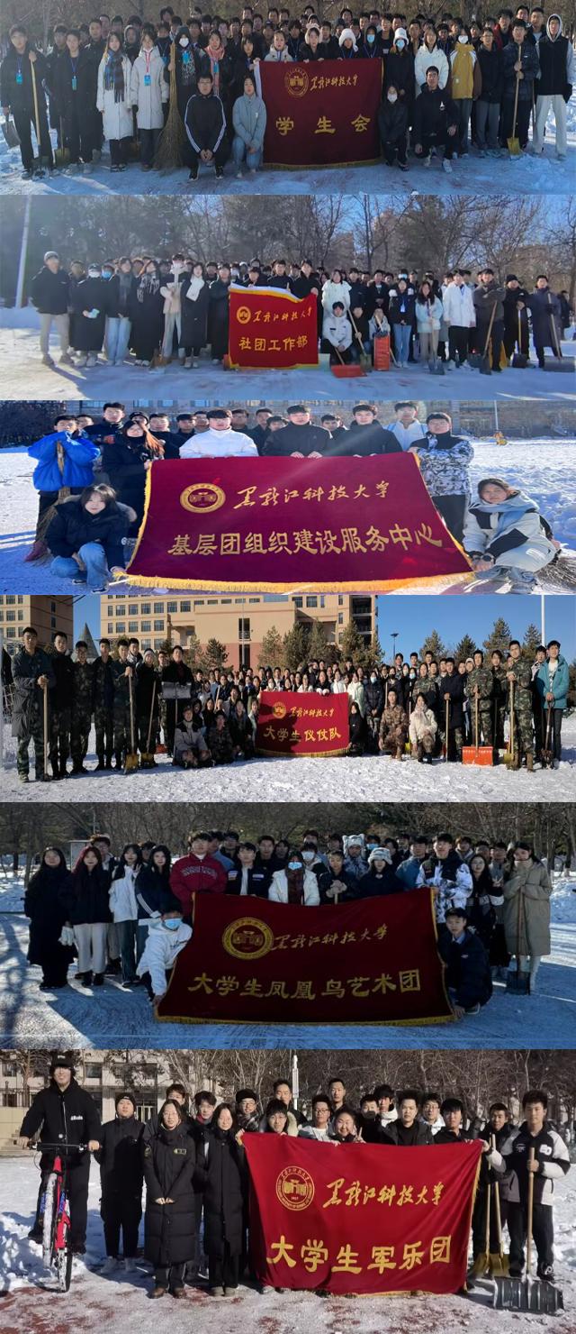 活动现场,校院两级团学组织骨干打着旗帜、喊着口号、精神饱满、斗志昂扬,不断挥舞着铁锹和扫帚,你扫我铲,成为皑皑白雪中一道靓丽的风景。学生会组织负责人在活动现场不时动员全体骨干要切实将服务同学,为同学做实事作为开展学生会工作,赢得学生认可和信赖的重要抓手和工作主线;大学生仪仗队、青年传媒中心、学生社团等各级学生组织团支部书记表示,将功能性团支部的主题团日开在服务同学的现场是一次新的体验,为下一步功能性团支部建设积累了宝贵经验。