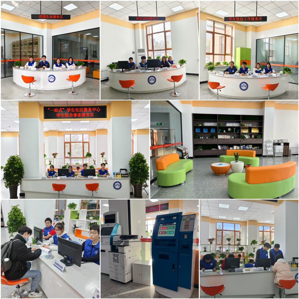 “一站式”学生社区服务中心总面积达300平方米,按照一室多能的设计原则,设有综合事务服务区、学生资助服务区、招生就业服务区、校园生活服务区、文创用品区、自助服务区等功能区域。第一批入驻职能部门9个,服务内容22项,建立服务学生成才、解决学生困难、方便学生办事、维护学生权益的“一站式”学生服务体系,打通学生教育服务管理最后一公里。
