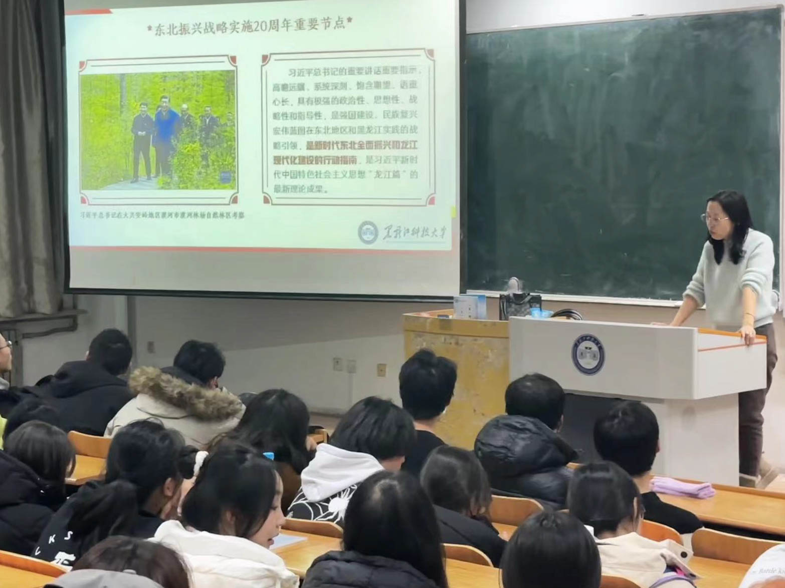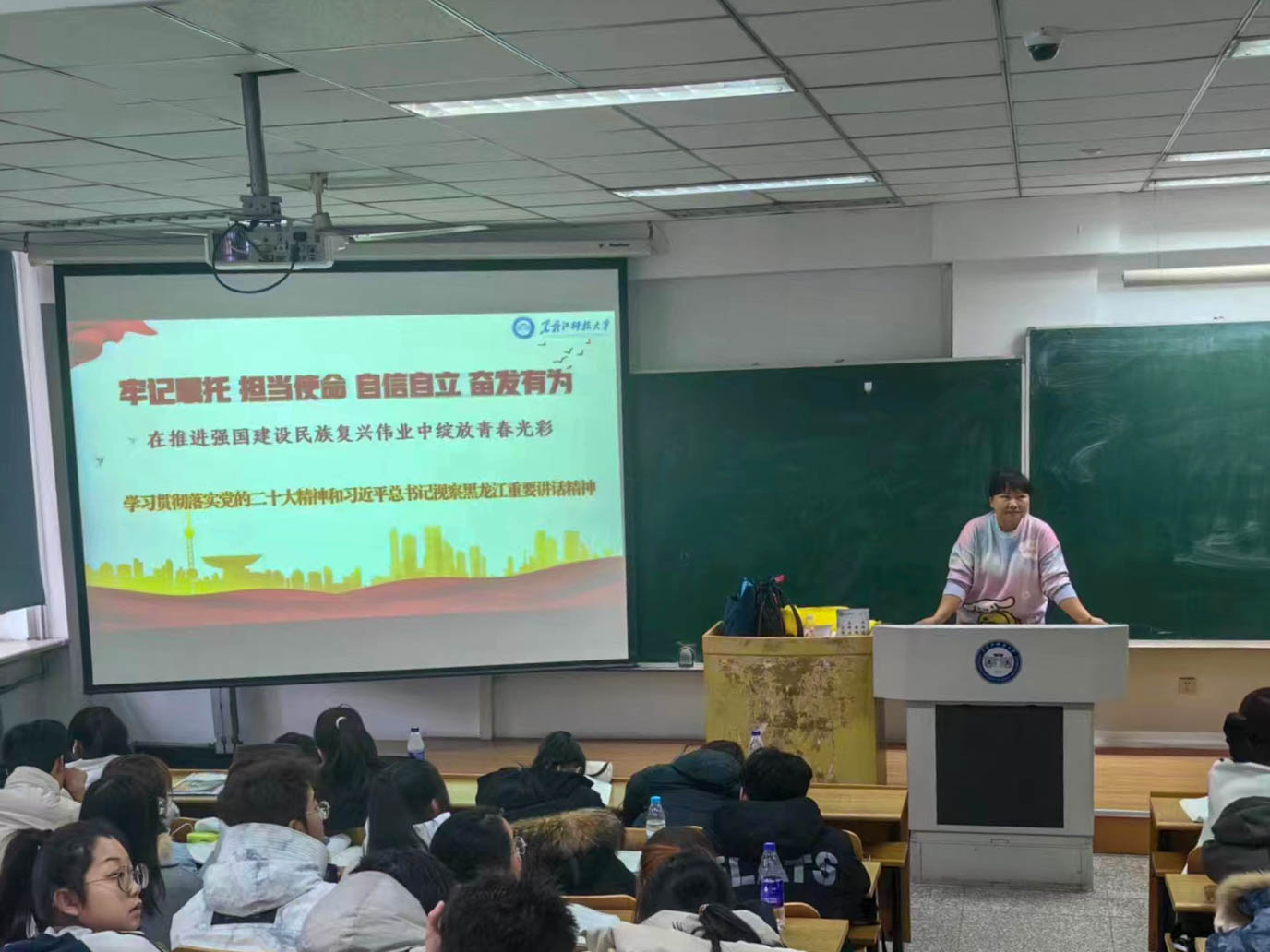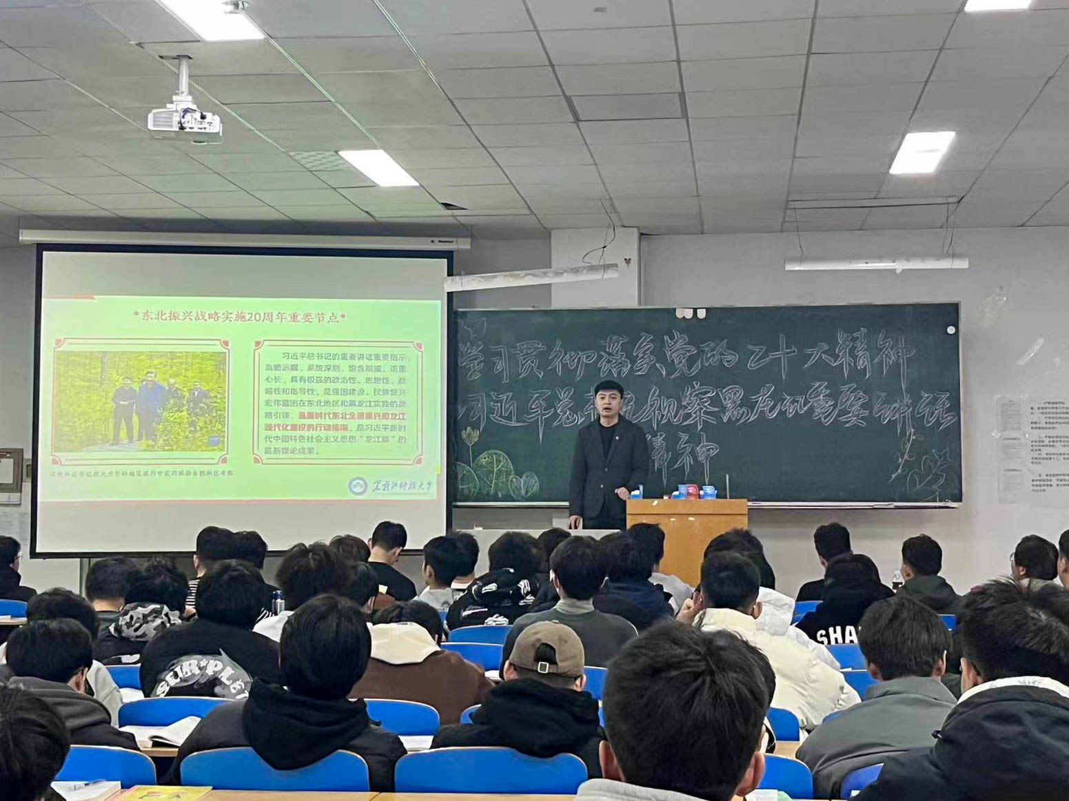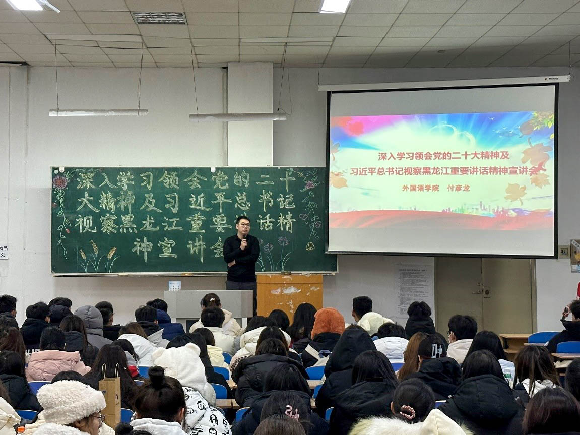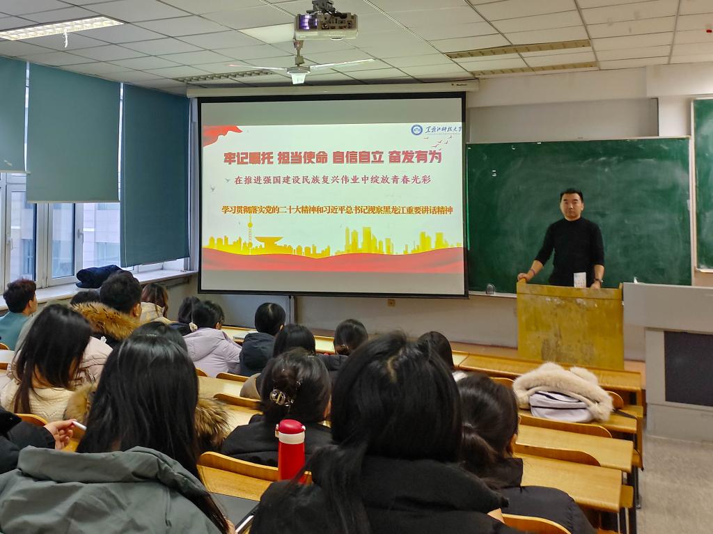 宣讲活动中,宣讲团成员全面深入地分别从党的二十大的主题、过去5年的工作和新时代10年的伟大变革、开辟马克思主义中国化时代化新境界、以中国式现代化全面推进中华民族伟大复兴、党的二十大对党和国家事业的新部署新要求、习近平总书记视察黑龙江期间重要讲话重要指示精神、习近平总书记对东北地区和我省历次重要讲话重要指示精神等方面进行了宣讲,引导学生们深刻学习领会党的二十大精神和习近平总书记提出的新时代推动龙江全面振兴新思想、新论断、新目标。