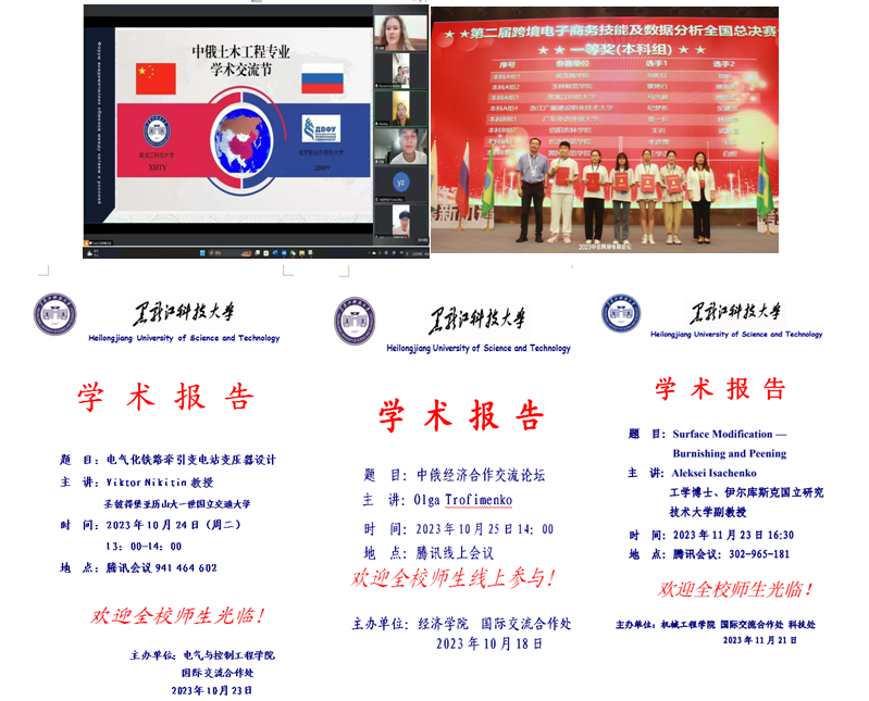 国际交流合作处积极主动争取上级政策、经费支持,获批高教强省专项经费20万元,用于对俄及“一带一路”国际合作项目。在2022年取得丰硕成果后,今年建筑工程学院开展了首届“友谊杯”建筑文化艺术节及中俄土木工程专业学术交流节;经济学院参加了“2023一带一路暨金砖大赛之第二届跨境电子商务技能及数据分析”全国总决赛并取得优异成绩。机械学院、电气学院、经济学院等开展了线上国际学术讲座,二级学院的国际交流工作蓬勃开展。