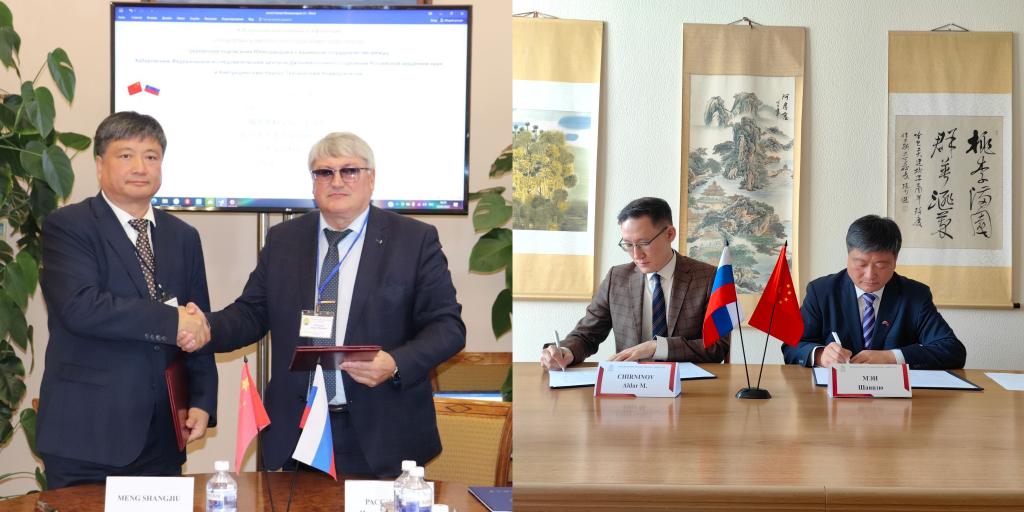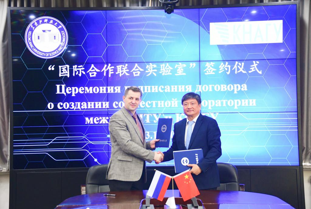10月20日上午,校长孟上九、副校长陈凯云会见了俄罗斯阿穆尔河畔共青城国立大学校长德米特里耶夫,共同签署了“关于建立国际合作联合实验室的协议”。