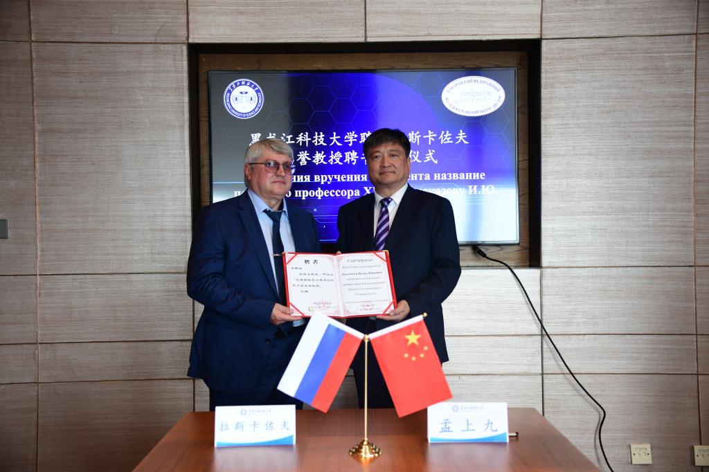 由中国教育部学校规划建设发展中心主办,黑龙江省教育厅和省内四所高校承办的2023国际产学研用合作会议于10月24日在哈尔滨召开。 校长孟上九出席开幕式并与俄罗斯阿穆尔河畔共青城国立大学校长德米特里耶夫共同参加了国际联合实验室的揭牌仪式。