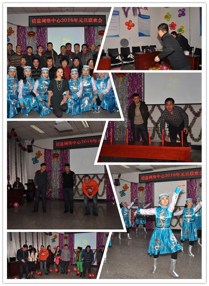信息网络中心举办庆元旦联欢会。联欢会上有对联评选、舞蹈站在草原望北京、独唱、小合唱等丰富多彩的节目,你比我猜等趣味游戏以及抽奖活动,中心全体员工欢聚一堂,欢声笑语,热闹不已。学校党委副书记唐家玮应邀参加了活动。