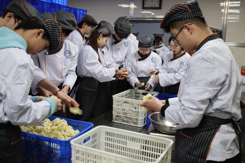 随后,同学们体验后厨择菜、清洗、去皮等环节,在此过程中学生与员工互相交流沟通,进一步增进彼此之间的了解。