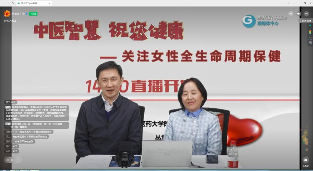 全校女教职工线上观看省教科文卫体工会“网络课堂”第一讲,由省中医药大学附属第二医院丛慧芳医生讲解《中医智慧——助“她”健康美》。
