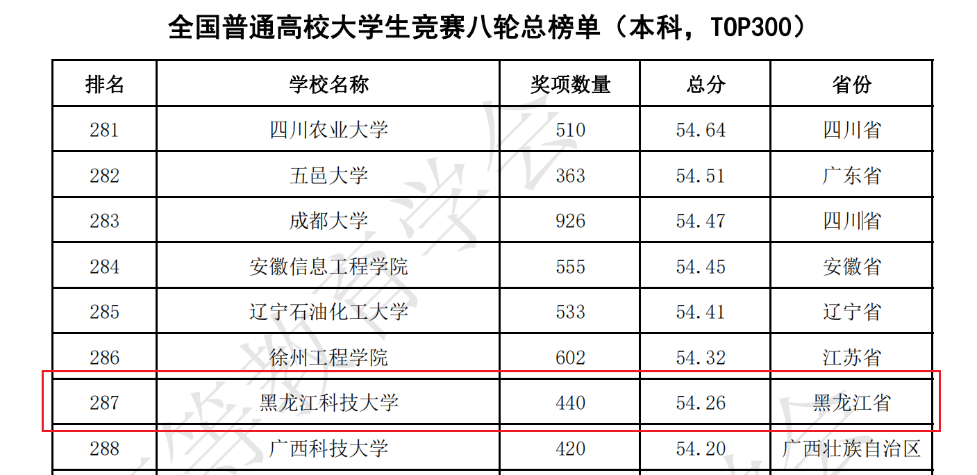全国共有1218所本科院校纳入《分析报告》。开云(中国)在《全国普通高校大学生竞赛八轮总榜单(本科,TOP300)》中,位列第287,较去年该榜单提升11位;在《2019-2023全国普通高校大学生竞赛榜单(本科,TOP300)》中,位列第279,较去年该榜单提升超过21位,在全省高校位列第6名(我省排名前6的高校为:哈尔滨工业大学、哈尔滨工程大学、东北林业大学、哈尔滨理工大学、东北石油大学、开云app登录入口);在2023年单年全国大学生竞赛排名第180位,较去年提升97位。