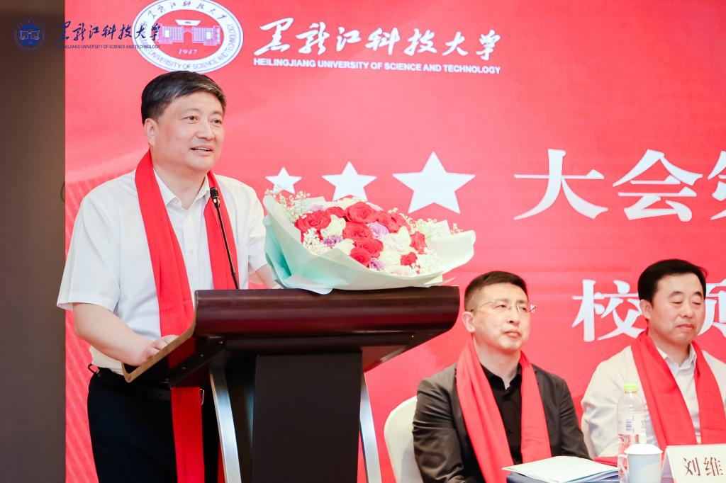 会上,孟上九代表母校和校友总会讲话。他对济南校友会成立表示热烈的祝贺,向当选的济南校友会理事会成员表示良好祝愿,向一直以来关心支持学校发展的各商会、各地校友会和广大校友们表示衷心的感谢。他对校友们在各自领域中取得的成绩给予肯定,并介绍了学校近年来在建设发展中取得的丰硕成果。他强调母校是校友的强大依靠和温暖家园,校友是母校最亮丽的品牌和名片,是学校发展建设过程中一支重要依靠力量,并对济南校友会提出了三点希望。一要坚持推进校友会组织建设。夯实组织基础,加强制度建设,规范工作流程,定期举办活动,把自身建设成为政治立场坚定的校友会、团结奋进的校友会、勇攀高峰的校友会。二要不断强化校友服务理念。提升校友工作水平,强化校友服务意识,打造校友文化品牌,全面构建全员、全程、全方位的校友工作机制,为校友间搭建互通互联平台,为济南校友事业发展强基赋能。三要助力母校和区域经济建设。不忘母校师恩,常回家看看,为母校发展建设献智献力;铭记黑土情谊、念兹在兹,到龙江投资兴业,助力龙江振兴发展;主动担当作为,与济南高质量发展同向同行,画出最大同心圆。