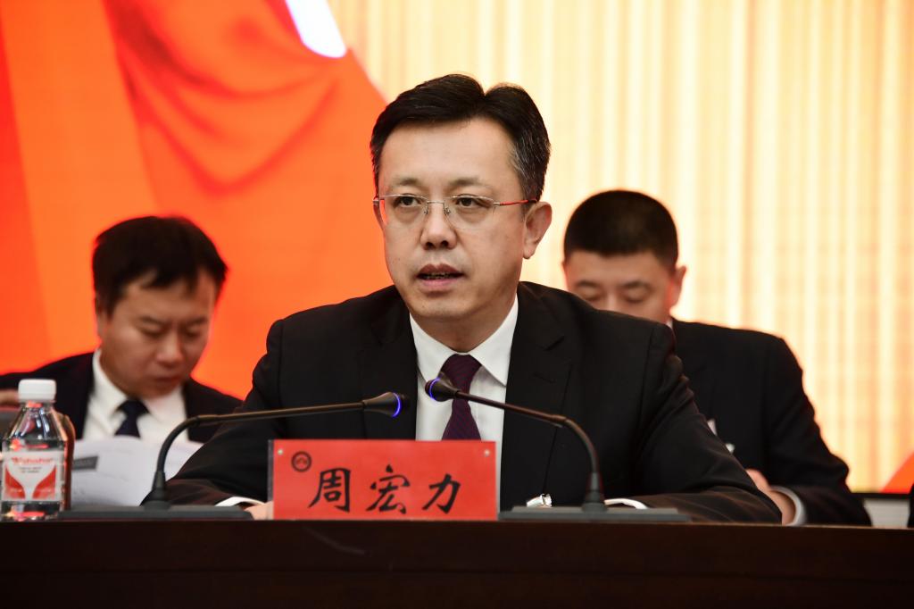 闭幕式上,周宏力作《心往一处想,劲往一处使,奋力开创学校事业高质量发展新局面》的讲话。