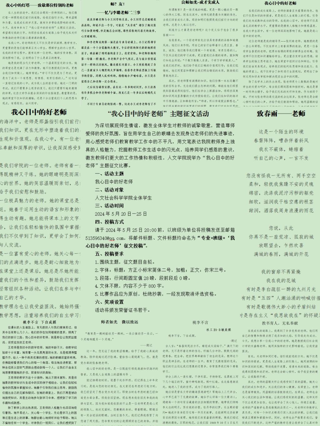 编者按:百年大计,教育为本;教育大计,教师为本;教师大计,师德为本。教书育人,教书者必先学为人师,育人者必先行为世范。习近平总书记指出,新征程上,希望全国广大教师以教育家为榜样,大力弘扬教育家精神,牢记为党育人、为国育才的初心使命,树立“躬耕教坛、强国有我”的志向和抱负,自信自强、踔厉奋发,为强国建设、民族复兴伟业作出新的更大贡献。为弘扬“教育家精神”,持续推进师德师风建设,学校推出“师德师风建设系列报道”,着力宣传各教学单位在师德师风建设方面的做法、亮点、特色和工作成效,旨在交流工作、总结成果、分享经验、把握方法、完善提高,为学校高质量发展奠定坚实的基础。