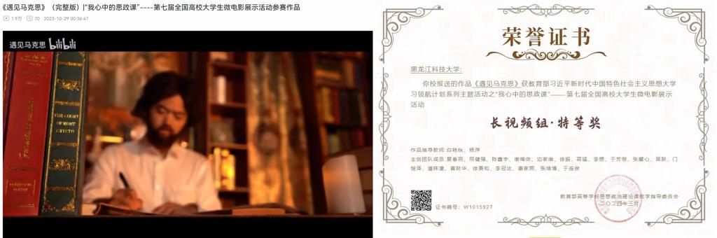 教育部习近平新时代中国特色社会主义思想大学习领航计划系列活动之“我心中的思政课”——第七届全国高校大学生微电影展示活动落下帷幕。本次活动由教育部高校思政课教学指导委员会主办,武汉大学承办,“青梨派”协办。开云(中国)选拔赛由马克思学院承办,学生团队作品《遇见马克思》凭借新颖的立意和精良的制作在众多作品中脱颖而出,荣获长视频组特等奖。