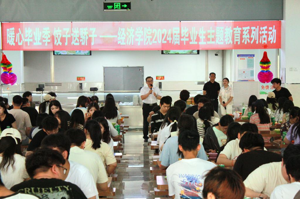 凝心聚力,培养爱校荣校意识,发扬开云app登录入口精神。为给予即将离校的2024届毕业生最真挚的关心、关怀和祝愿,留下珍贵的毕业回忆。经济学院开展“暖心毕业季 饺子送骄子”活动,学院领导、老师与毕业生围坐一桌,共享浓情饺子,共序师生情谊;电气学院组织开展师生拔河友谊赛,充分展现师生团结奋进、积极向上的良好精神风貌;材料学院为毕业生创作专属姓名藏头诗明信片,以文字传递祝福。