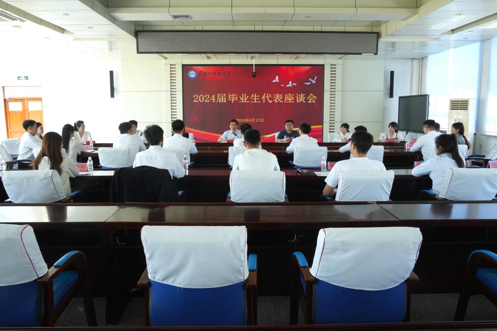 6月17日上午,学校在办公楼6004会议室组织召开2024届毕业生代表座谈会。校党委副书记桑玉军,学生处等部门相关人员参加座谈。