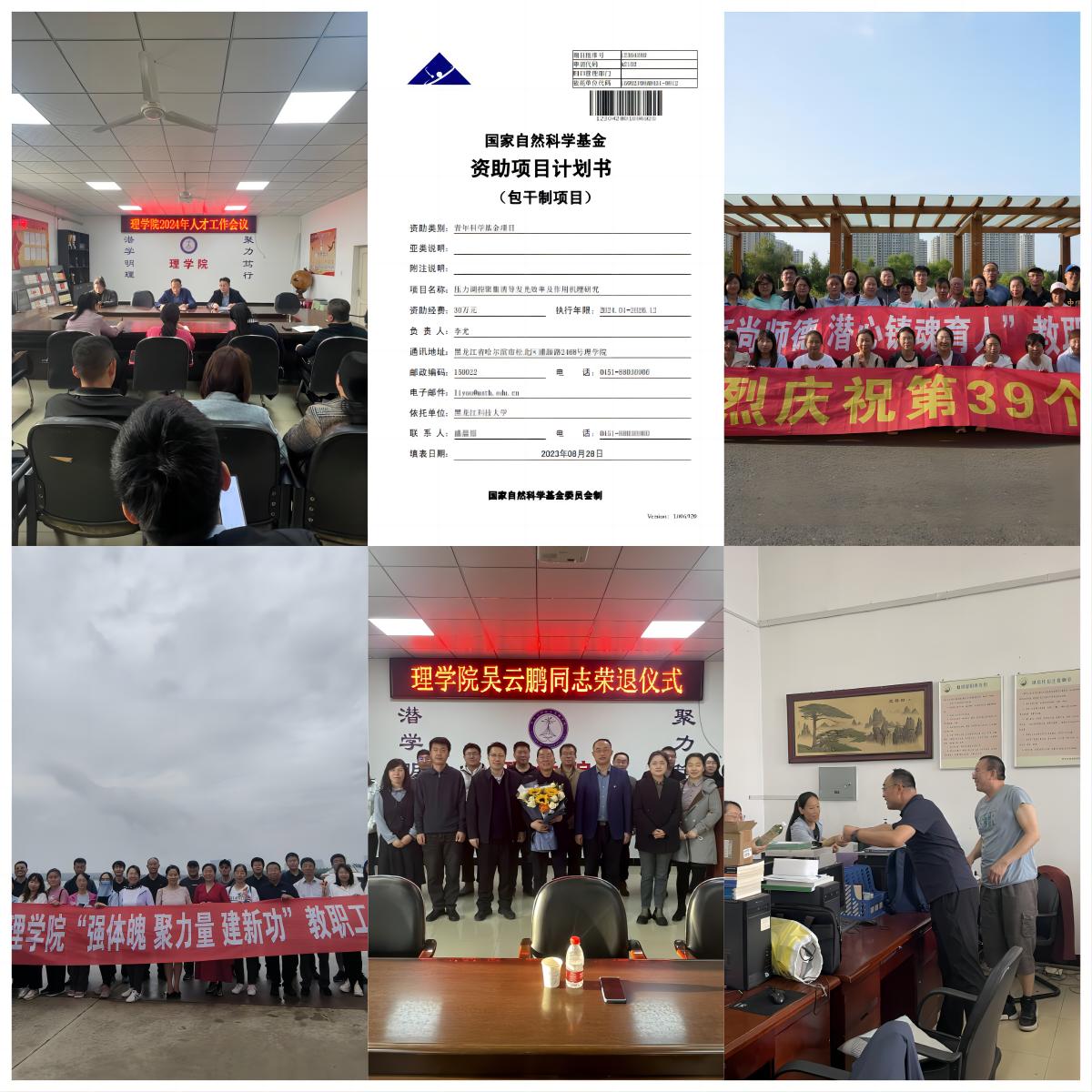 学院坚持将师德师风建设宣传制度化、常态化,营造弘扬高尚师德浓郁氛围,涵养教师的职业操守。一是坚持定期召开人才工作会议,凝聚发展共识,汇聚发展合力,激发教师特别是年轻教师的干事创业热情。2021年入职青年教师获国家自然科学基金(青年)1项。二是坚持以庆祝教师节为契机持续开展“我身边的优秀教师”选树活动,为在院工作20年教师颁发了“理学二十载”荣誉证书和纪念品,为退休教师举办荣休仪式。三是坚持发挥群团组织的桥梁纽带作用,在毕业生答辩及期末阅卷时开展“夏送清凉”“冬送温暖”慰问活动,建成了学校工会“职工小家”,适时组织教职工开展徒步、团建等文娱活动,不断增强师生的幸福感、获得感、安全感。