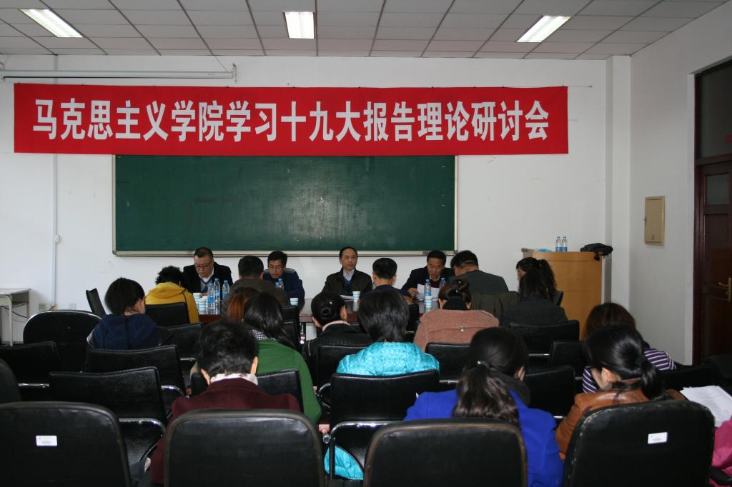 10月24日下午,开云(中国)马克思主义学院在科技大厦二楼会议室召开学习党的十九大报告理论研讨会。校党委书记武俊峰出席会议并讲话。他在讲话中对大家的发言给予了充分肯定,并就报告中首次提出的新时代、新思想、新论断、新目标等内容与大家交流了学习体会。他希望马克思主义学院能充分发挥自身在理论研究的学科优势和思政课教师教育者、研究者和传播者的作用,在学习宣传贯彻党的十九大精神上、在推进“四进四信”专题教学工作中继续学在前处、研在深处,站在高处、讲在真处、教在实处,力争多出一批高水平的成果和经验,在践行立德树人的使命中不断彰显哲学社会科学学科和工作者的重要作用。