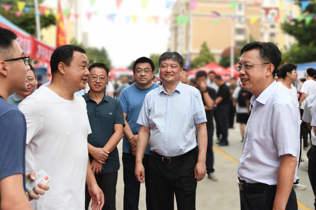 在科技文化广场迎新集中报到现场,周宏力、孟上九详细了解今年迎新工作的基本情况,仔细询问新生报到流程、报到进展情况、入住情况,依次走访各学院迎新场地,询问了解各学院迎新工作中的新做法、新举措,对各学院形式新颖的迎新举措,给予充分肯定。在志愿服务站,对广大志愿者和迎新工作人员的辛勤付出表示慰问和感谢。