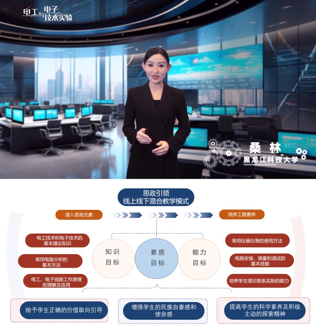 《电工与电子技术实验》作为理工科非电类专业的必修实验课,旨在传授电工电子学基础的同时,强化学生的实践能力、创新精神及专业素养。通过将思政元素融入课程,实现立德树人的教育目标,培养全面发展的应用型人才。课程采用线上线下混合教学模式,线上侧重理论学习与操作演示,线下则强化实验操作与创新实践,通过案例分析促进理论与实践的深度融合,引导学生在实践中内化道德观念、外化行动准则,逐步提升其创新实践能力和社会责任感。