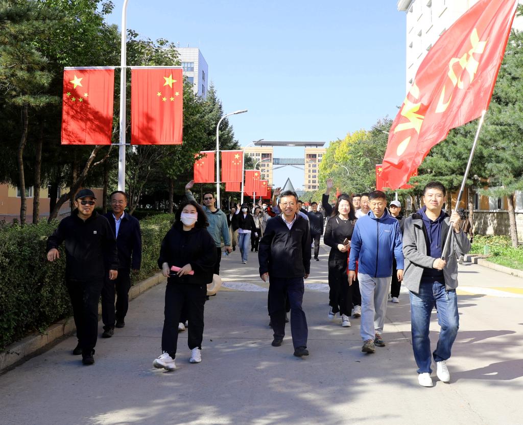 以徒步健身这种积极向上的方式庆祝中华人民共和国成立75周年,并以此表达我们对祖国的深深热爱和美好祝福,祝愿我们伟大的祖国繁荣昌盛,人民幸福安康。校党委书记周宏力宣布徒步健身活动开始,校长孟上九为徒步健身活动鸣枪发令,徒步健身活动正式启动出发。
