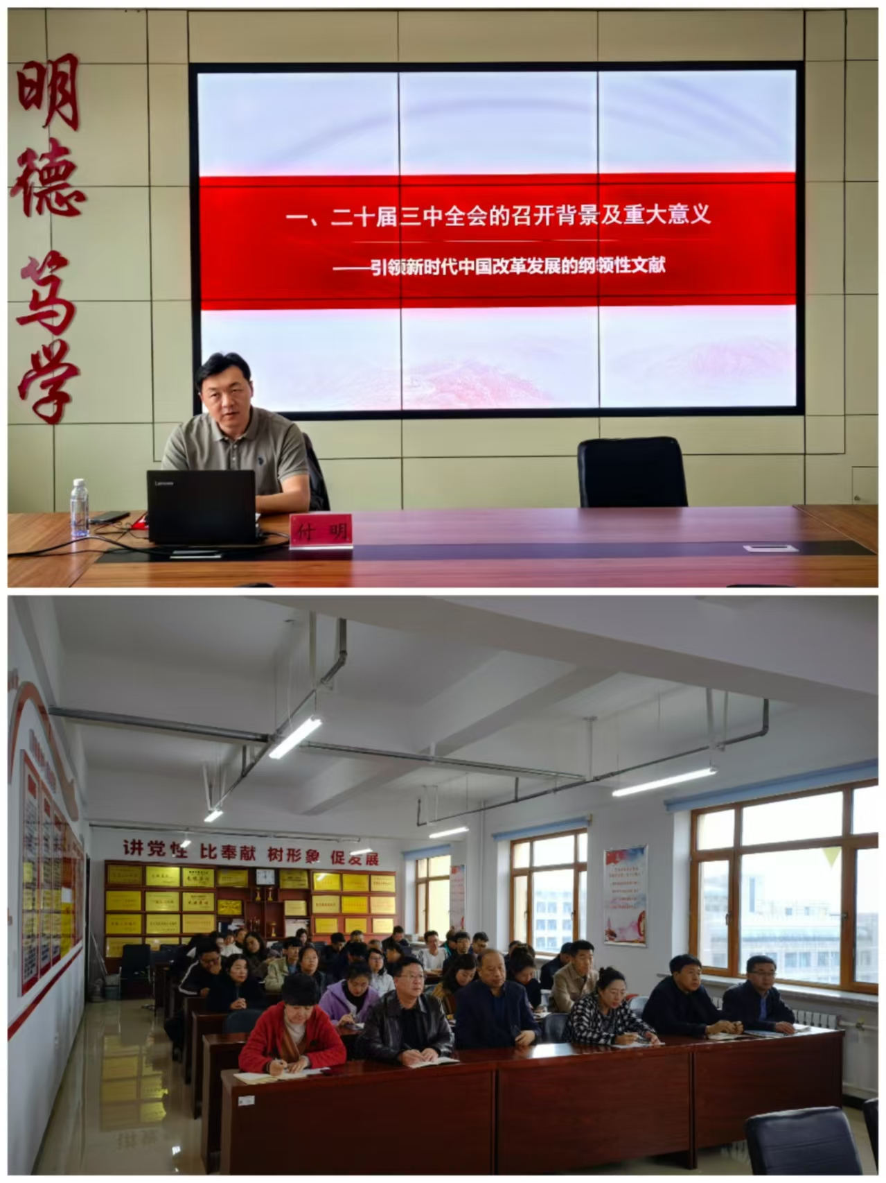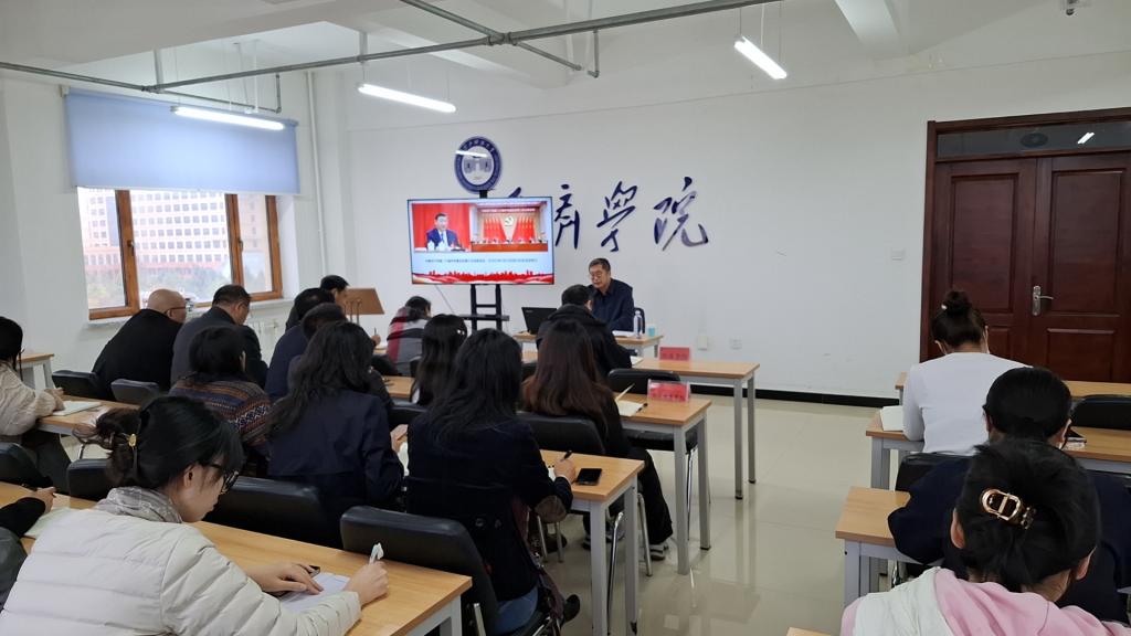10月10日,经济学院和继续教育学院联合举办学习贯彻党的二十届三中全会精神宣讲报告会,特邀学校宣讲团成员、马克思主义学院教师连永新在朝阳楼0502室作宣讲辅导,两个学院全体教职工参加了此次宣讲报告会。连永新围绕学习贯彻习近平总书记在党的二十届三中全会上的重要讲话精神和全会《决定》,对党的二十届三中全会精神作了全面宣讲和深入阐释。